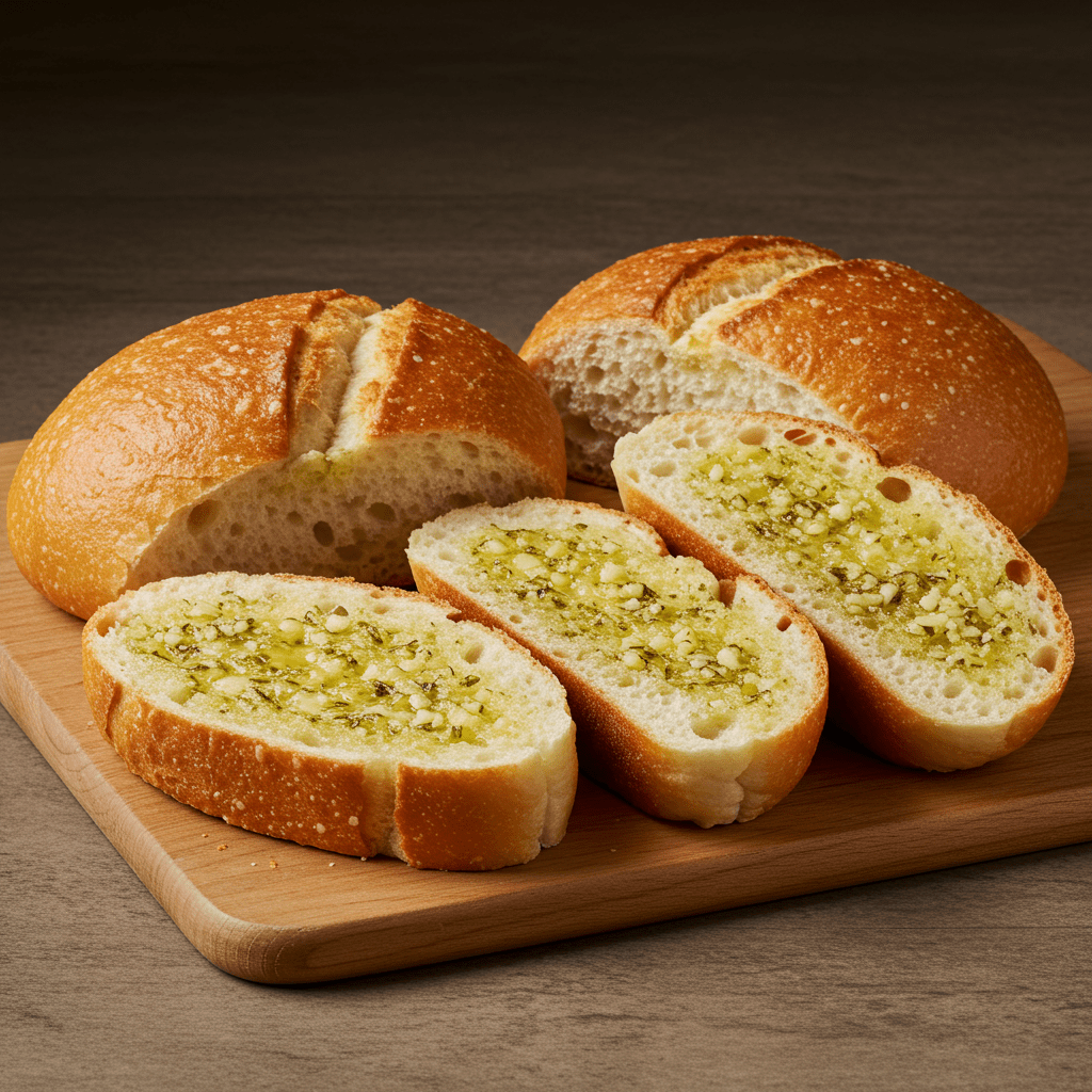Warm, golden garlic bread slices with a buttery, herby flavor. Served in a portion of 4.